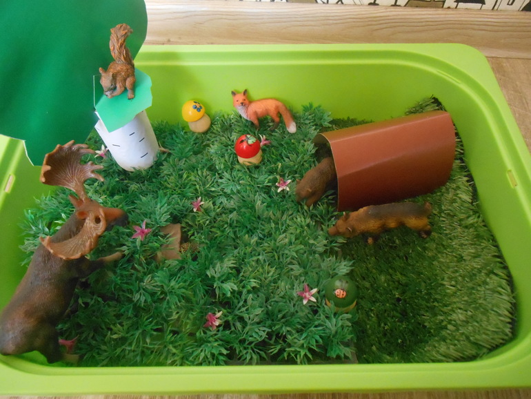 Игры и игрушки для малышей от 1 года до 2х летСделала любимому мальчику сенсорную коробочку,будем изучать кто живет в лесу.