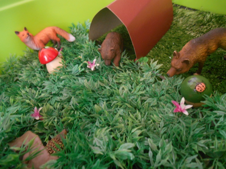 Очень креативно, я сама все придумать не могла как нам полянку сделать, всю зиму думала, а мы тут как раз всех и выучили, заодно и Африку, и морских. Фигурки животных незаменимая вещь