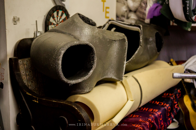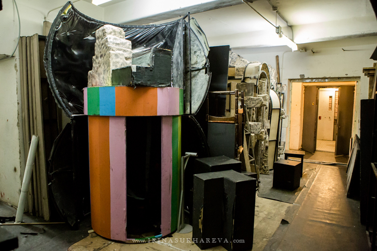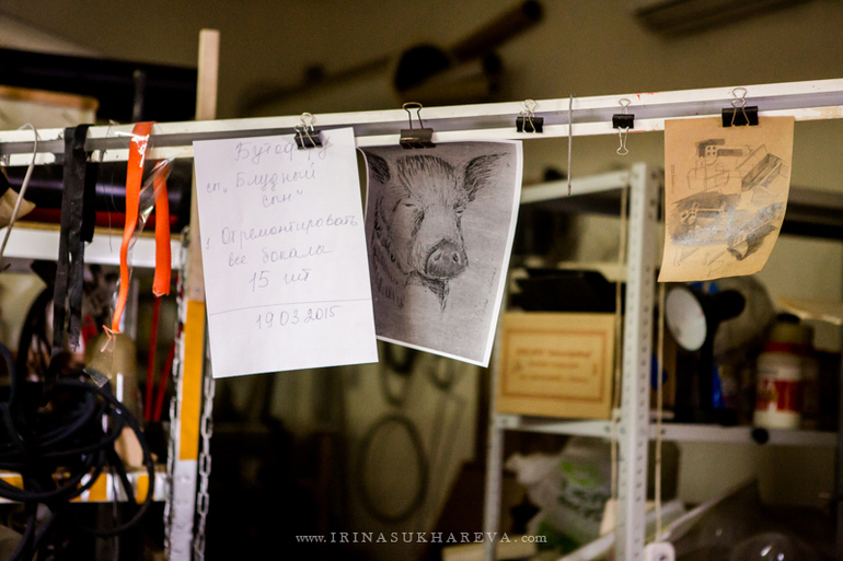 Бутафорский цех. Здесь царит творческий беспорядок, стоит запах столярной мастерской, клея и краски. Чего тут только нет!