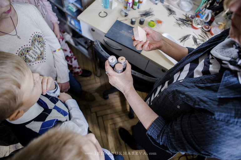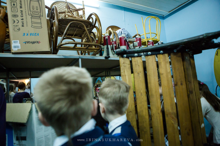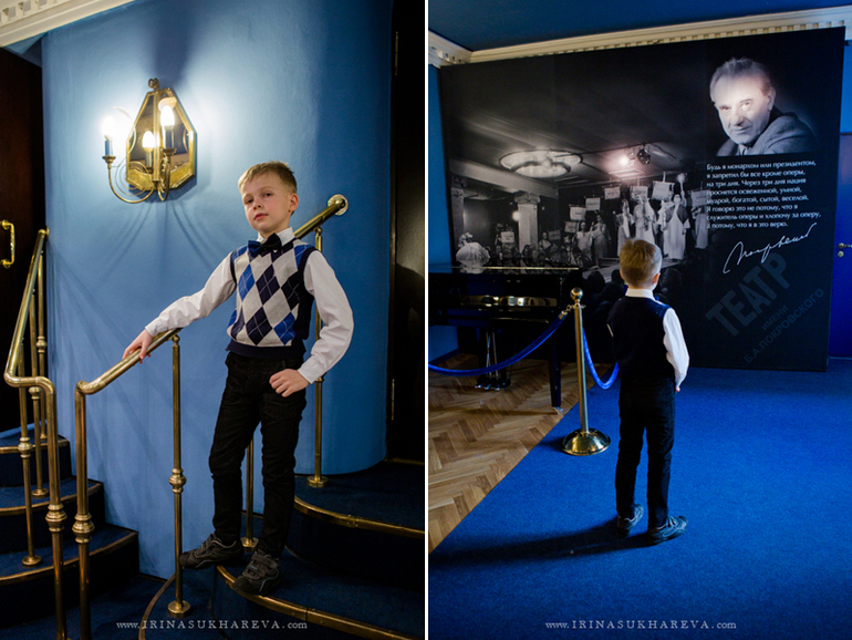 После спектакля не хотелось уходить. Мы с Федей задержались, чтобы сделать фото, и нас пригласили на экскурсию за кулисы. Мы побывали на сцене, в костюмерной, гримерных, мастерской, где делают декорации, - везде, где не ступала нога обычного зрителя.
