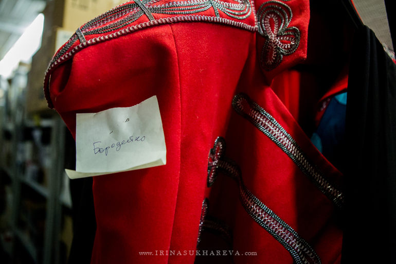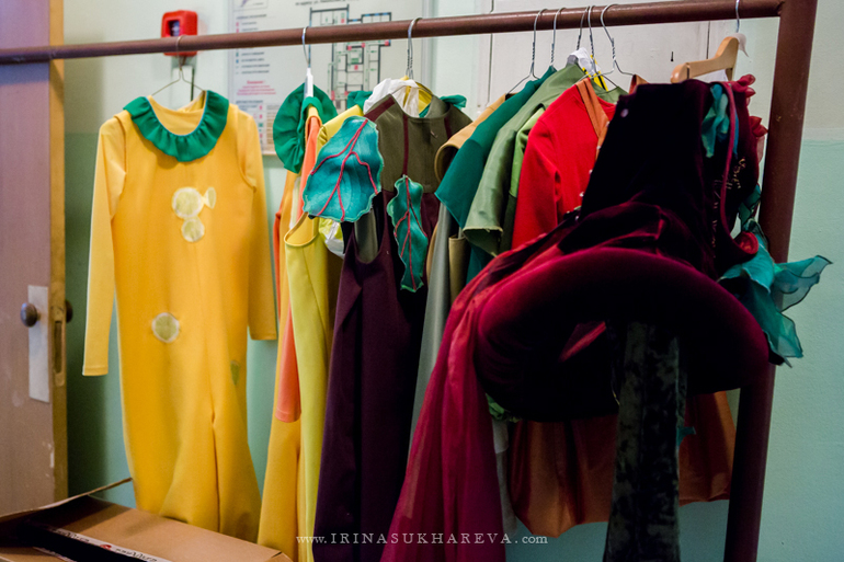 В день играют часто по два спектакля. После каждого костюмы необходимо просушить и проветрить. Поэтому их не убирают в костюмерную, а оставляют в коридорах.