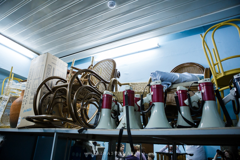 А вот для декораций специальных складов нет. Ведь помещение театра очень маленькое. Для этого используется каждый свободный метр коридоров.