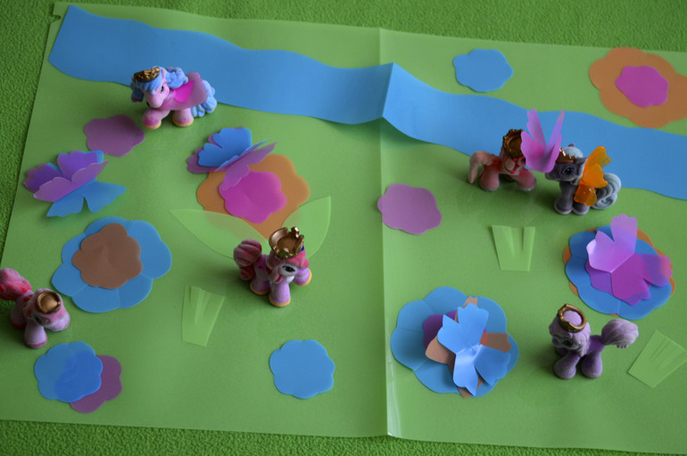 Игры и игрушки от 0 до 99 (Про игры и игрушки которые подойдут и большим и маленьким)Была я тут недавно в Фикс Прайсе и увидела набор пластиковых папок и подумала о том, что вот такие у них сказочные цвета. Тут же вспомнилось, что хотела я давно сделать полянку для игр из фетра для дочи, но все вот руки не доходили. И вот у меня в голове придумался небольшой сюрприз для моей Анютки. Вырезала я полянку за считанные минуты :), ну минут 20 где-то. ( вырезала перед работой, так как очень хотелось, чтобы придя домой после садика, доча обнаружила сказочную полянку). И вот что получилось.