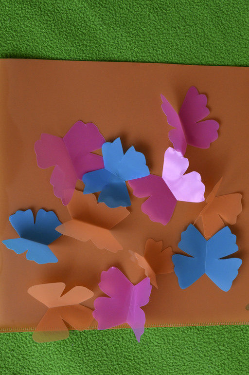 Сначала у меня "запорхали бабочки". Их можно сделать разноцветными, если соединить 2-3 штуки.