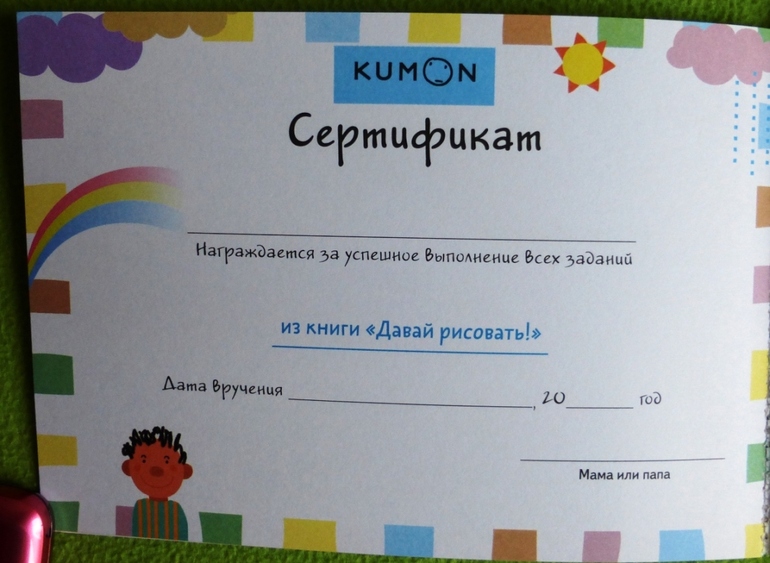 В конце страничка с Сертификатом, который выдается папой или мамой малышу за успешное выполнение всех заданий.