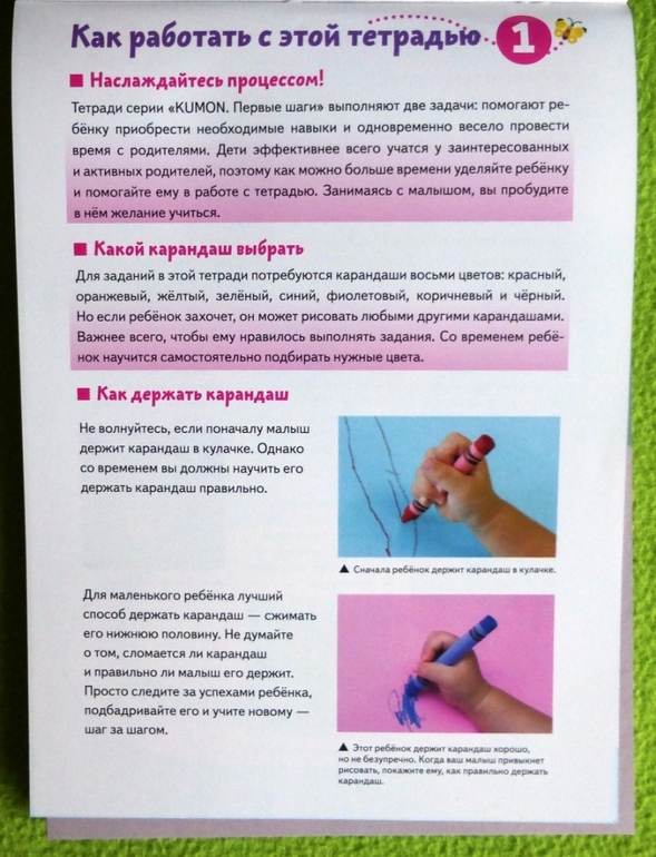 В этом обзоре хочу показать пособие KUMON Первые шаги «Давай рисовать!», которое рассчитано для малышей, которые только учатся держать карандаш.