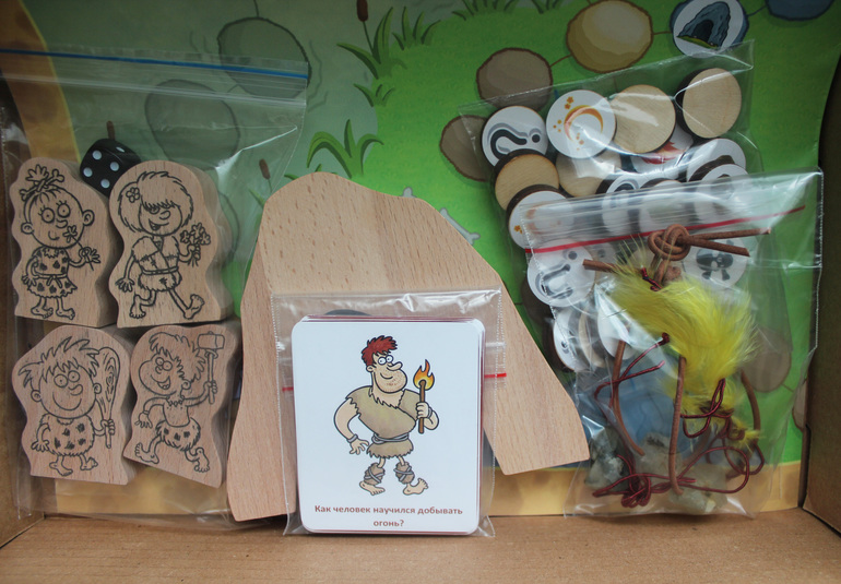 Играть в эту игру может и малыш, не обладающий информацией о древних людях, он многое почерпнет во время игры, когда ему или другим игрокам будут попадаться фишки с вопросами. Даже если игрок не знает ответ на вопрос - ему ответить на него помогут взрослые, а со временем он уже и сам сможет ответить на любой вопрос, так как информация во время игры запоминается гораздо быстрее, чем каким-либо другим образом )
