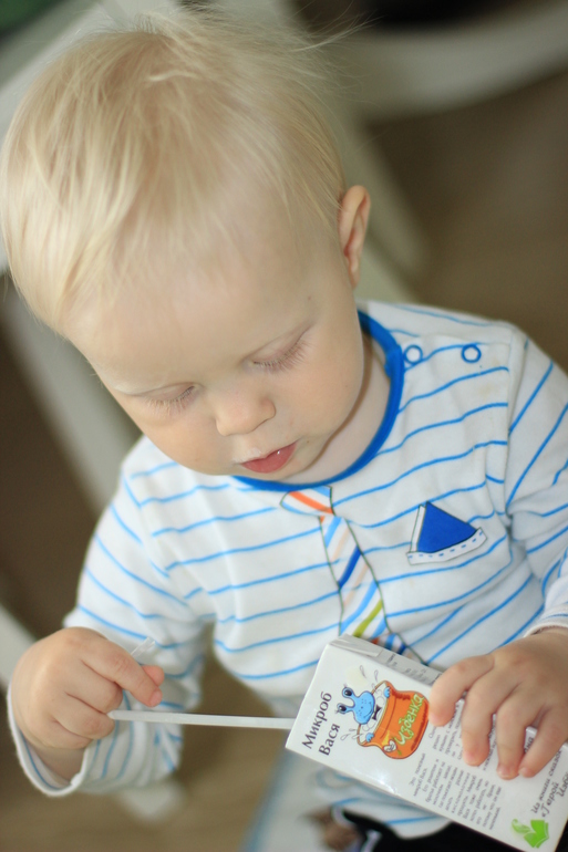 Давно научился пить из трубочки и теперь тренируется- вытаскивает и вставляет трубочку