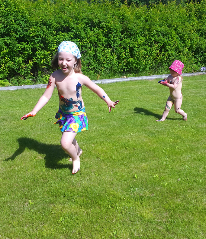 Игры и игрушки от 0 до 99 (Про игры и игрушки которые подойдут и большим и маленьким)Когда лето в полном разгаре, детям нужно давать отрываться! У нас получился яркий день игры в цветные ляпы! Несколько капель гуаши и гонка друг за другом начинается! Закончилось все танцами индейцев и большой стиркой, но счастья, хоть отбавляй!
