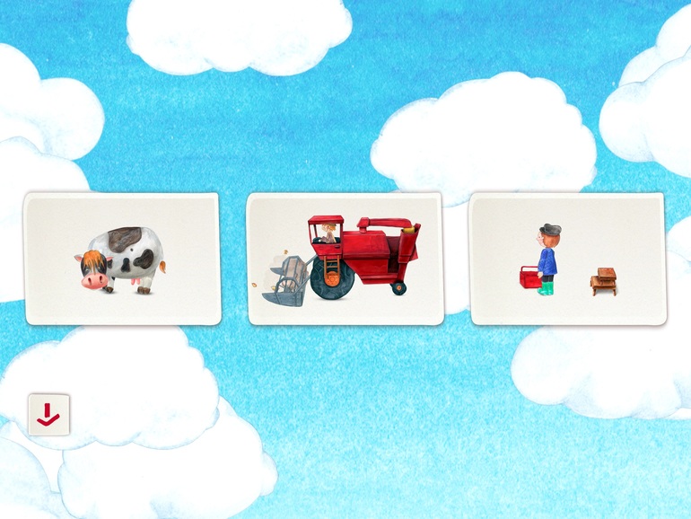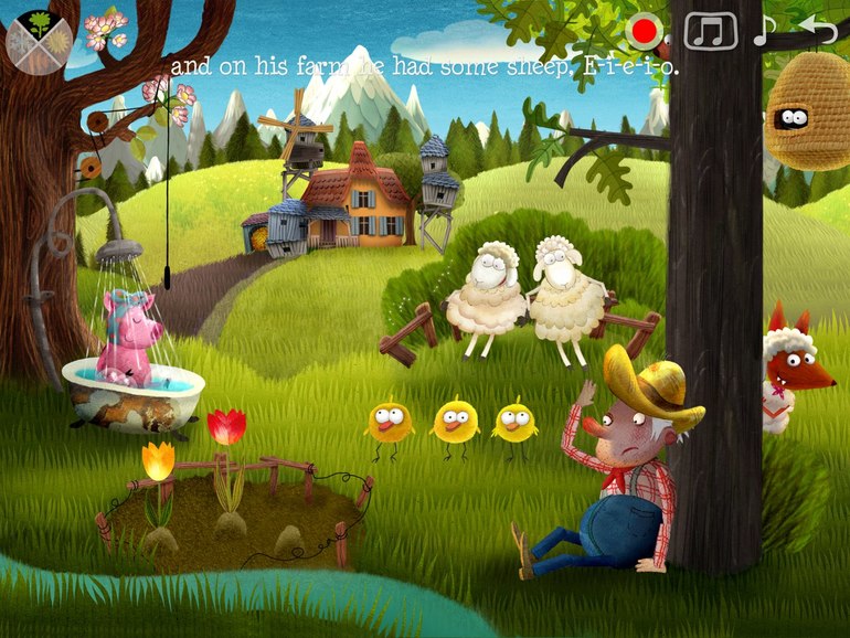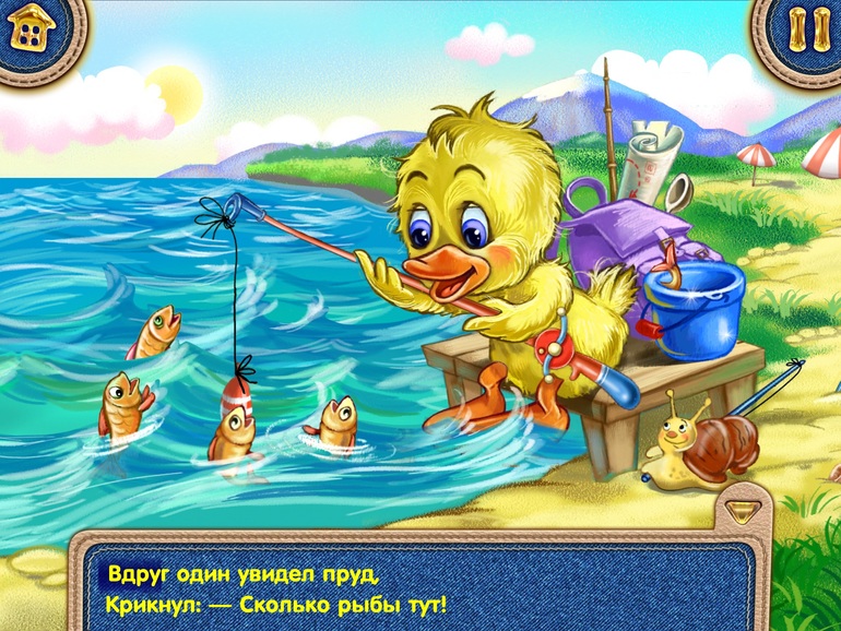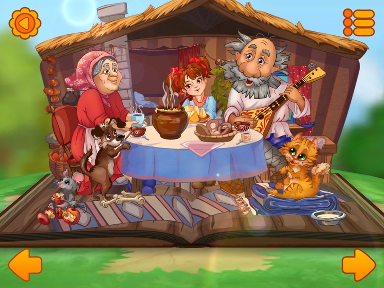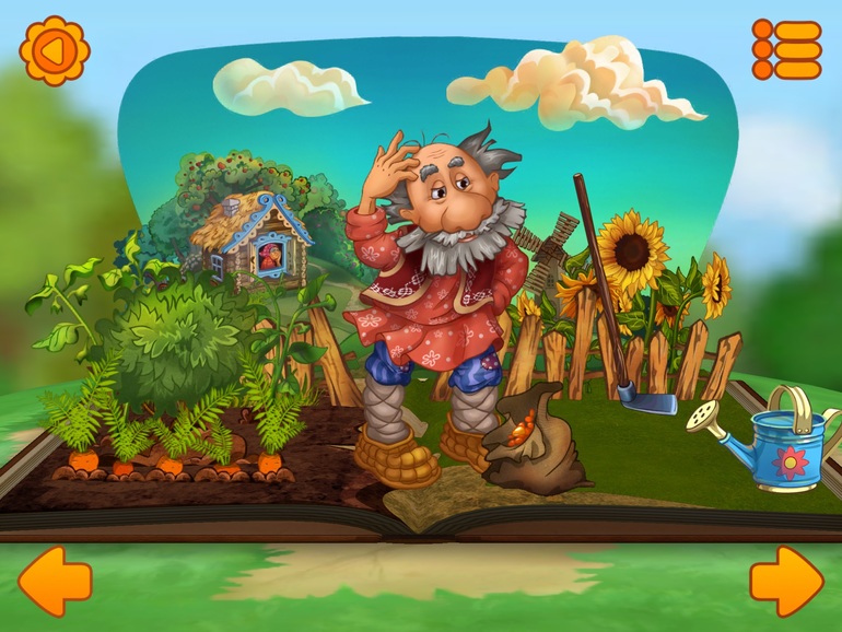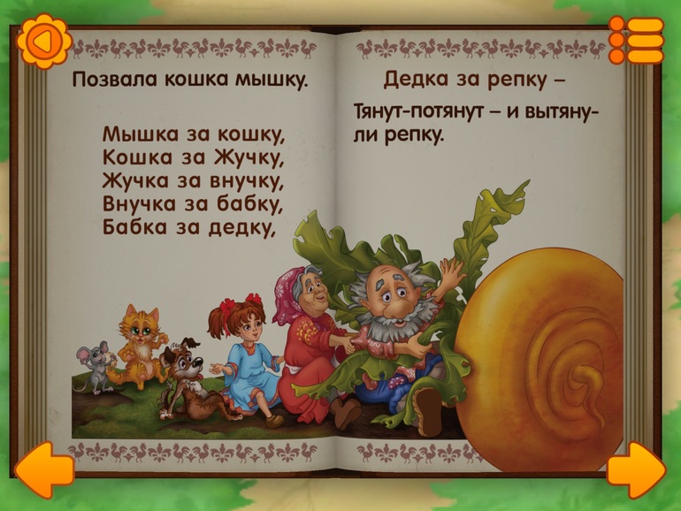 6) Сказка "Репка". Сказка из другой серии, одни странички, как обычная книжка с озвучкой и можно листать, а потом появляется анимационная полянка, где можно что-то понажимать.