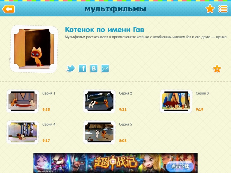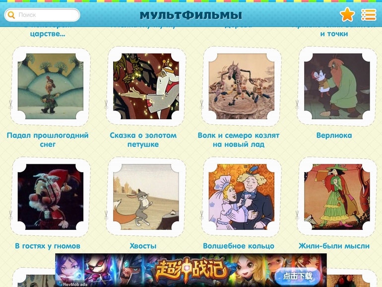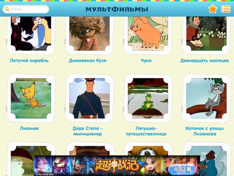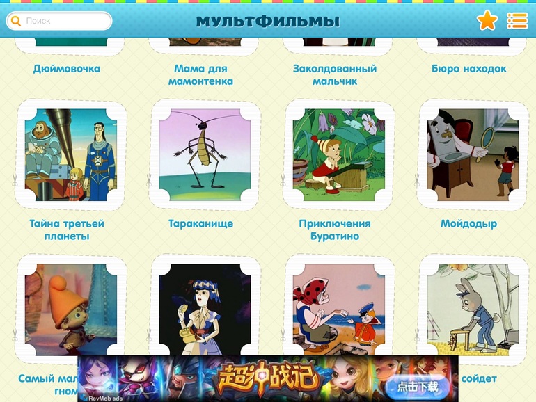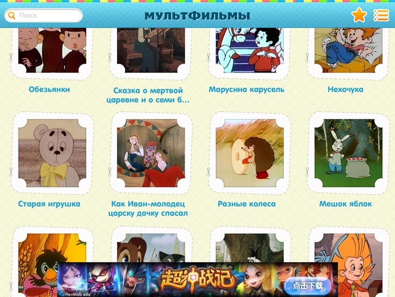 2) Мультфильмы! Супер приложение. Очень рекомендую. Все мульты подгружаются из ютуб, я так поняла (интернет необходим), но такой огромный сборник и так удобно, и без рекламы. Просто огонь!