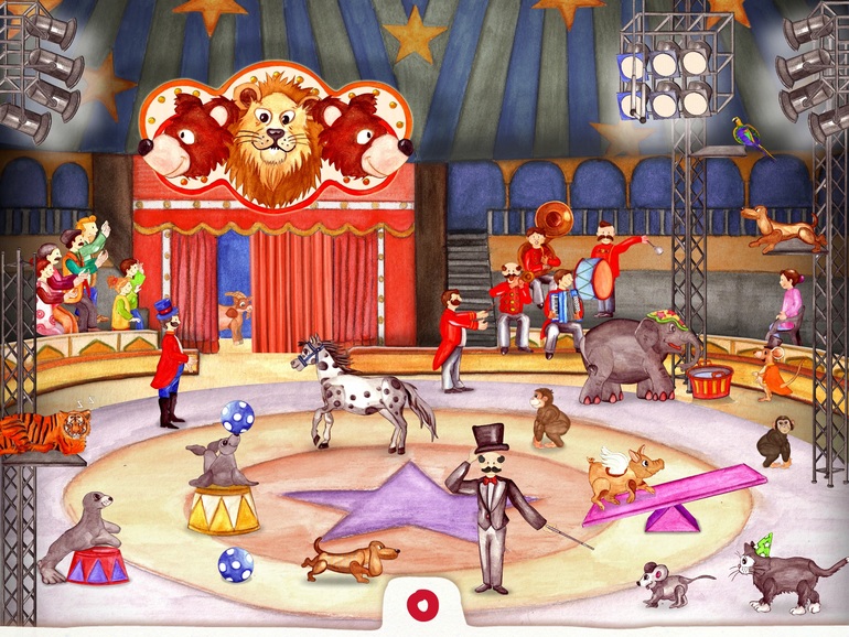 3) Цирк. Тоже самое. только зверюшки цирковые. Долго играем с блошками :)
