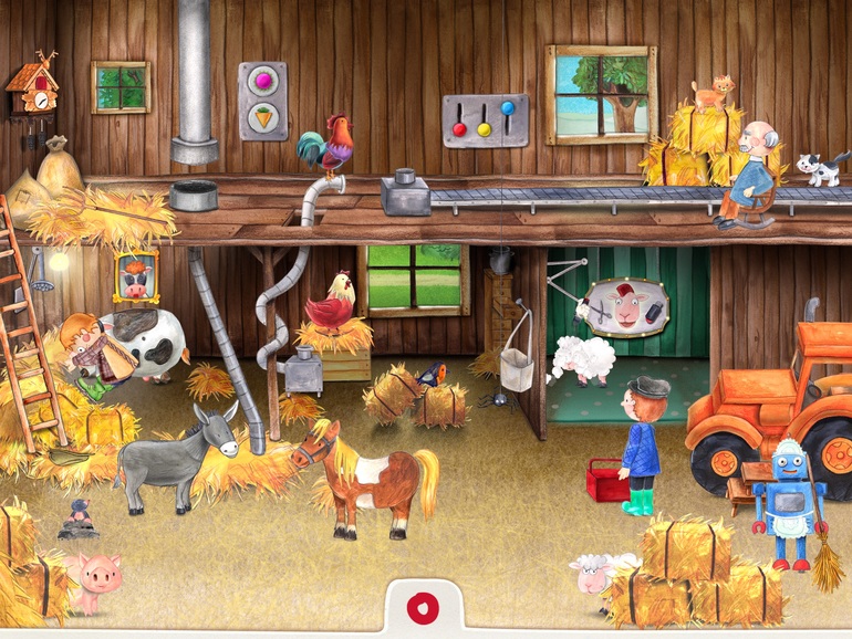 Тут у нас анимационные книжки. Их очень любопытно рассматривать, каждая мелочь приводится в действие, мне они так понравились, что я сама игралась в них долго и скачала почти всю серию. Кира проявила интерес не сразу, сейчас бывает рассматриваем, особенно ферму.