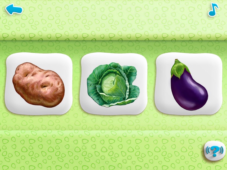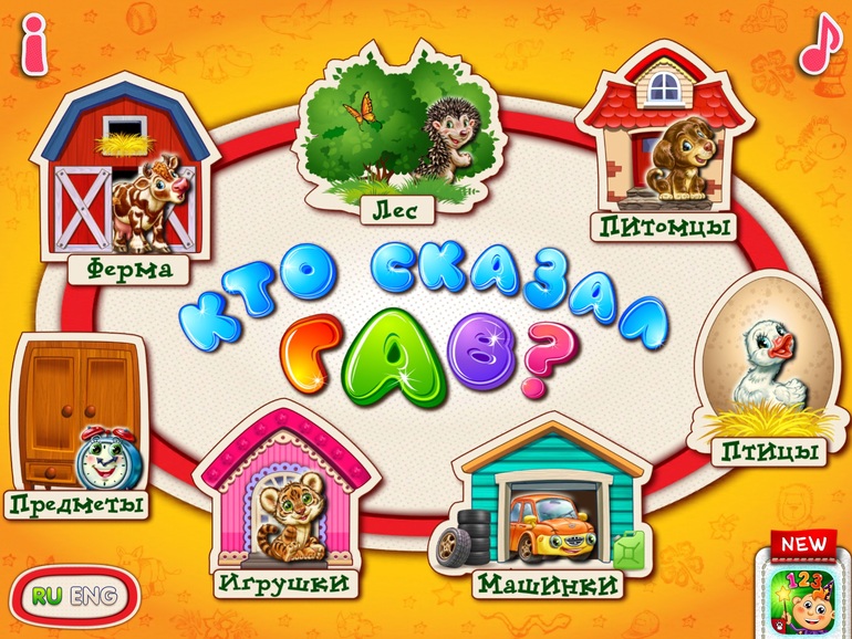 2) Кто сказал ГАВ (Peekaboo) Тут есть некоторая особенность в отличии от остальных подобных игр, тут нужно не просто показать животное (например корова), а предлагается выбрать из вариантов "кто говорит мууу" или не просто покажите помидор, а "какой овощ красного цвета" и т.д.