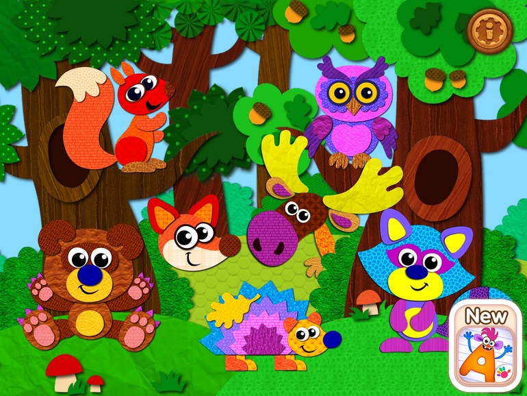 1) Пазл для малышей. Два режима: силуэты и пазлы. После того, как картинку соберешь овации, звуки и прочее, можно полопать шарики)))