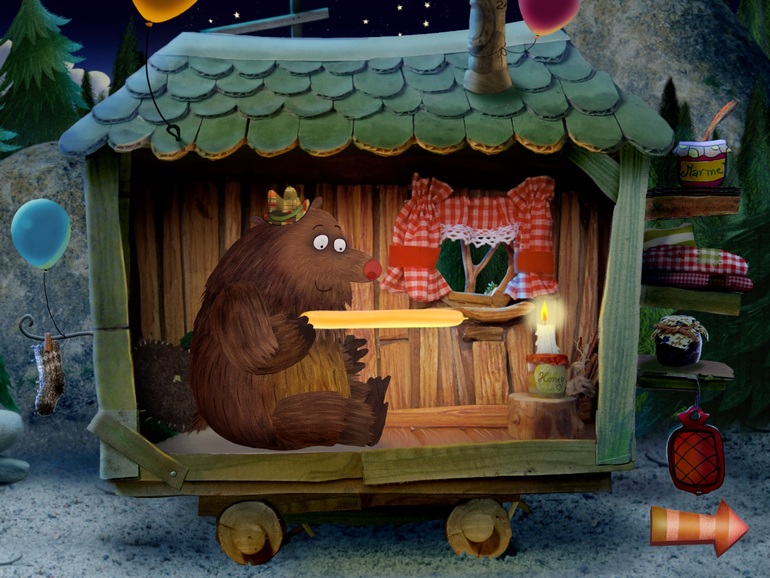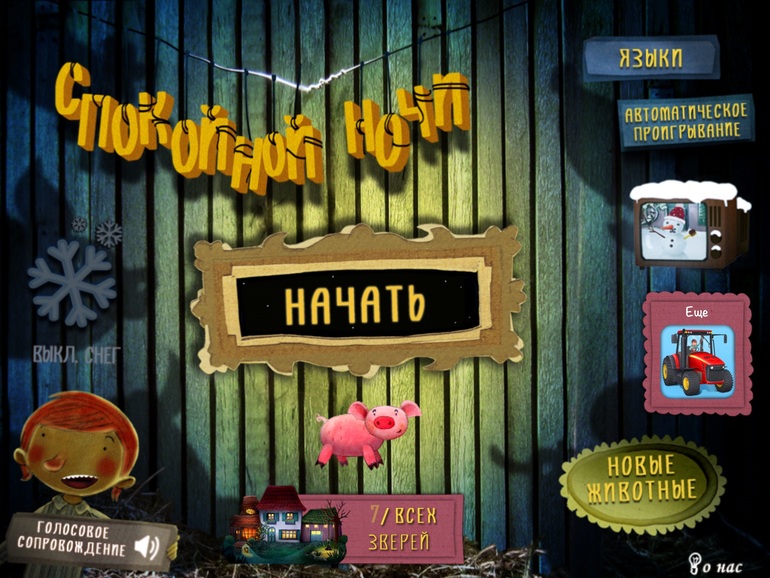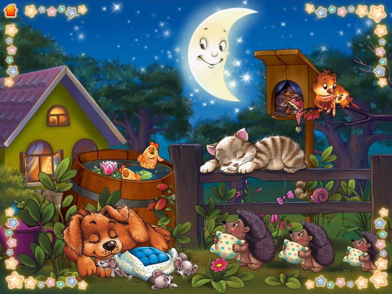 2) Спокойной ночи. Офигенная игра, любимая. Нужно зайти к каждой зверюшке в домик, поиграть с ней, выключить свет и уложить спать. Спокойная музыка и озвучка (можно докупать новых зверюшек) Перед сном можно поиграть, очень спокойная.