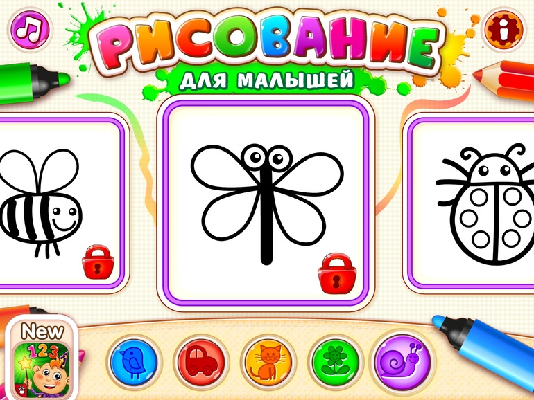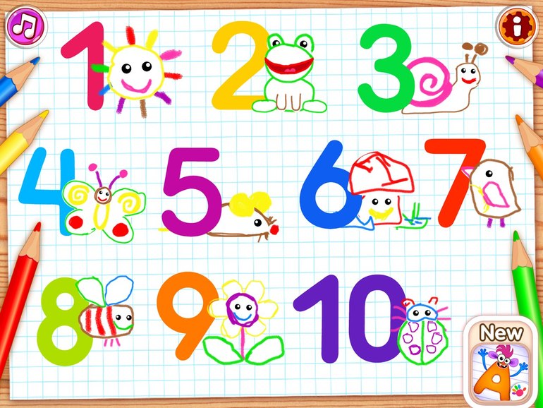 Тут несколько приложений по рисованию, азбука и счет до 10: