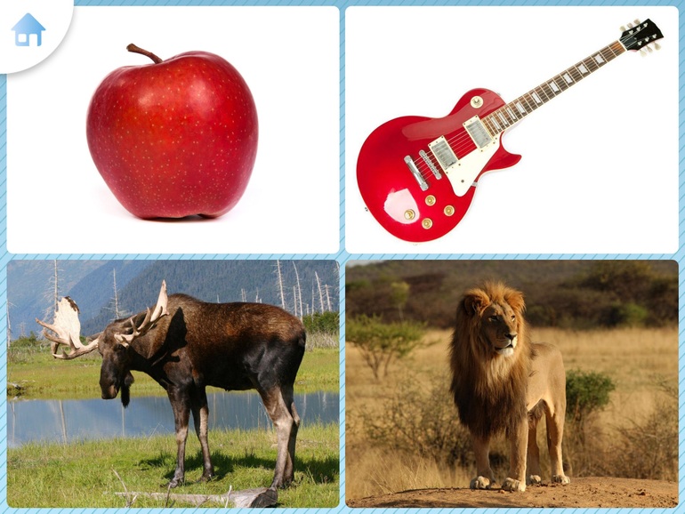 Игры из серии знакомства с животными/предметами/цветами. Выбрать из нескольких картинок одну правильную и пр. В некоторых приложениях добавляются пазлы/силуэты/парочки.