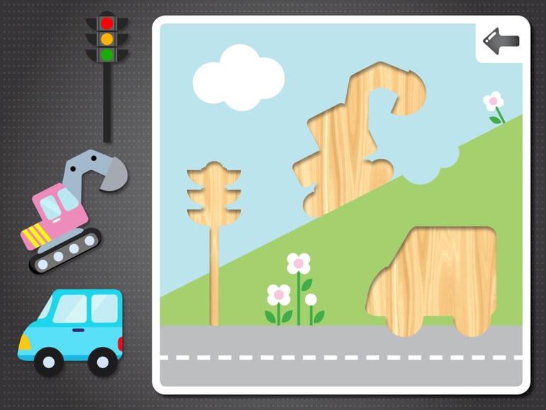 2) Приложение для детей. Тут составные пазлы, по элементу собираешь картинку, после того, как все собрано - можно совершать разные действия.