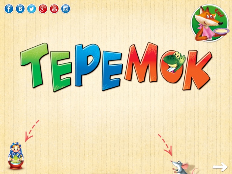 2) Сказка "Теремок". Одно время слушала и играла только в него, потом надоел. Из этой серии, самая любимая. Текст, рассказ, анимация. Стандартный набор. Ярко!