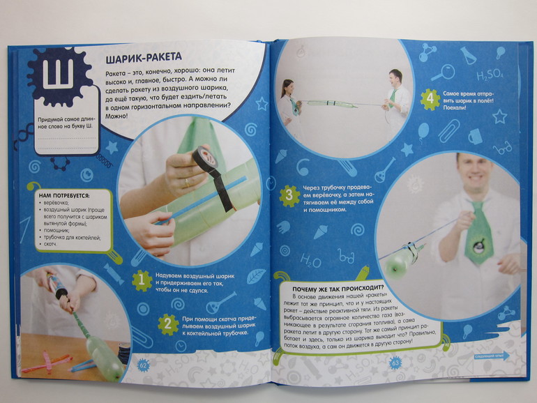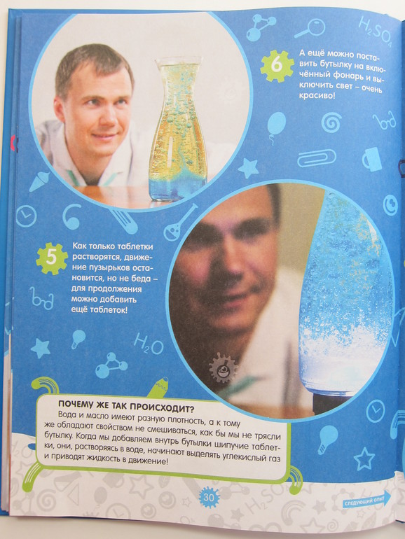 Итак, все начинается с хорошего материала. В нашем случае это стала книга "Азбука экспериментов профессора Николя". Люблю такие издания с пошаговой проиллюстрированной инструкцией, которые понятны не только взрослому, но и ребенку (некоторые опыты подготовил и провел сам Данька с моей минимальной помощью). В книге 33 опыта на каждую букву алфавита. Все опыты простые, непродолжительные и с доступным набором материалов. Кстати, на нашем сайте я недавно обнаружила дневник автора.