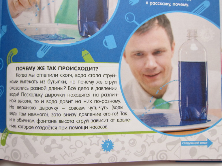 Я тоже далека от физика, для меня это тоже фокусы))Хи-хи, сайт Татьяны Пироженко обнаружила недельки две назад)) Пока только мельком изучила. Также имеется куча-мала бестолковых пособий. В следующий раз будет делать опыты по книгам "Научные опыты на кухне" и "Научные опыты в комнате". Странно, что на них так мало рецензий. Такие толковые, очень много фотографий, интересные опыты. У профессора Николя есть еще одна книга, выпущенная МИФом. Я так поняла, что она посерьезнее и на более старший возраст, а эта нам в самый раз в плане самостоятельного выполнения. Ну, а объяснение, как я писала выше, дело непростое и может сейчас даже и не очень нужное. Пусть будут чудеса!))Мое желание — сделать опыт, который с большим количеством пара.. сухой лед вроде называется.