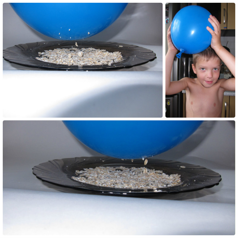 Шариком потереть волосы и поднести к геркулесу (если крупный, лучше немного измельчить). Хлопья начинают танцевать))