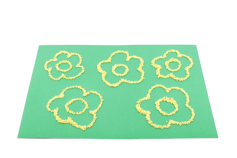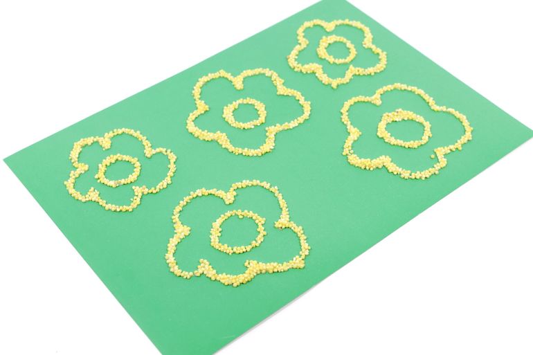 Игра на развитие мелкой моторики. Рисунок из пшена "Цветы"