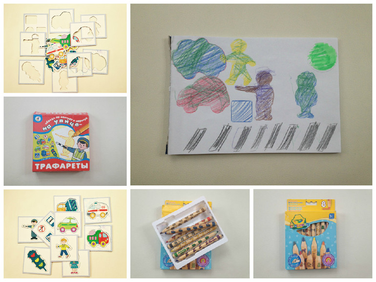 Развивающие игрушки (пазлы, вкладыши, конструкторы, мозаики)Порисовали с сыном;-) Четко по контуру линию я ему помогла сделать, затем сама придерживала трафарет, а он в это время все усиленно заштриховывал карандашом, в тоже время приговаривали вместе свои истории про зону пешеходного перехода и возможные моменты, связанные с этим действием, хочется сказать, очень увлекательное занятие;-) Рекомендую толстые карандашики Crayola, они классные! но не из дешевых. У кого есть возможность присмотритесь к ним. Ну и как обычно ни один день не проходит без трафаретов, потому что там наш любимый полицейский и мальчик с мороженым ;-)