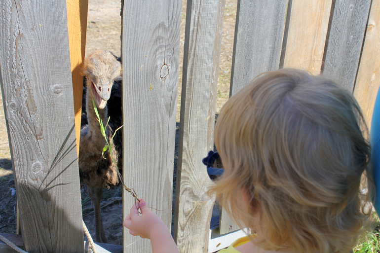 С другой стороны пирамиды находится страусиное подворье. Зайти на него не удалось - все было закрыто и никого не было вокруг, но и через забор интересно было посмотреть. Живут там и большие страусы и еще совсем малявочки.