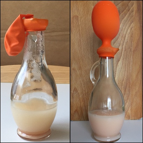 3. Надеваем на горлышко бутылки шарик. Через некоторое время он начнёт надуваться.