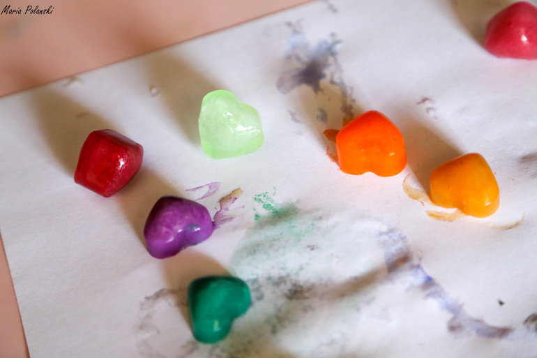 В продолжение льдистой темы, мы красили воду и потом замораживали ее в морозилке.