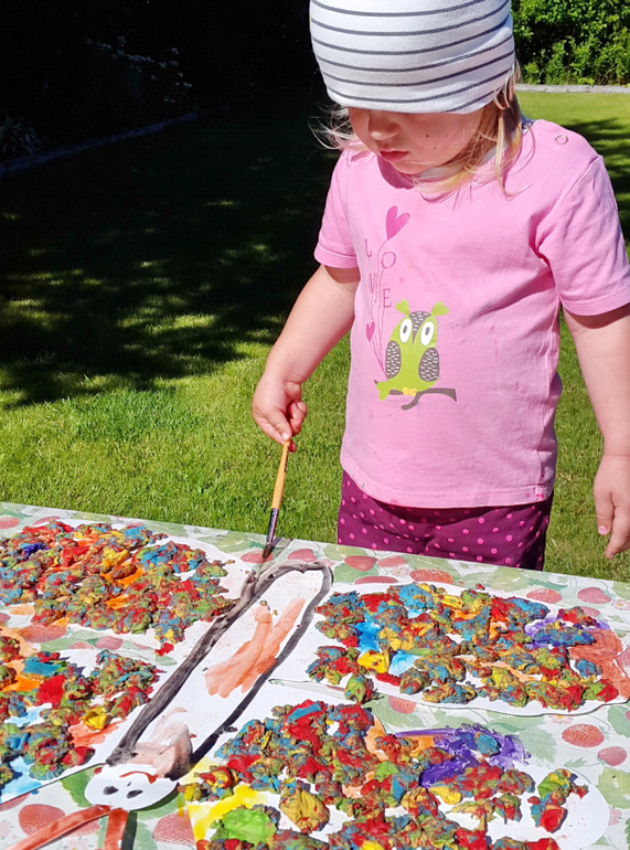Художка ( красим, рисуем , придумываем новые способы рисовать)В моем детстве мы частенько с мамой творили что-то из папье маше, долго клеили газетки, потом сушили, красили. Мы с Машей сделали что-то подобное, но в новом варианте. Взяли цветные бумажки, замочили в воде (нужно подольше), перемололи в блендере, добавили ПВА и получившуюся чачу стали раскладывать на плотной бумаге, которую вырезали в форме огромной бабочки! Дорисовали тельце, высушили на солнышке и коллаж, аппликация или папье маше, на вкус, готово!