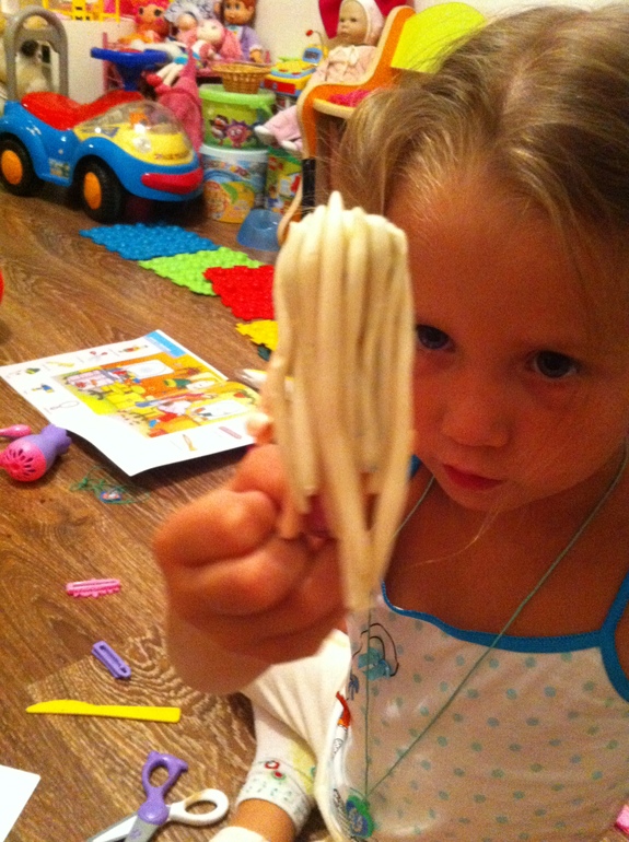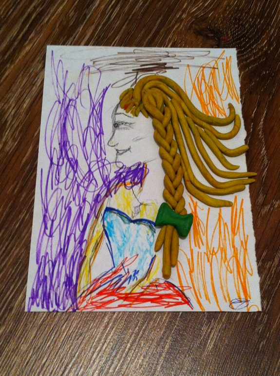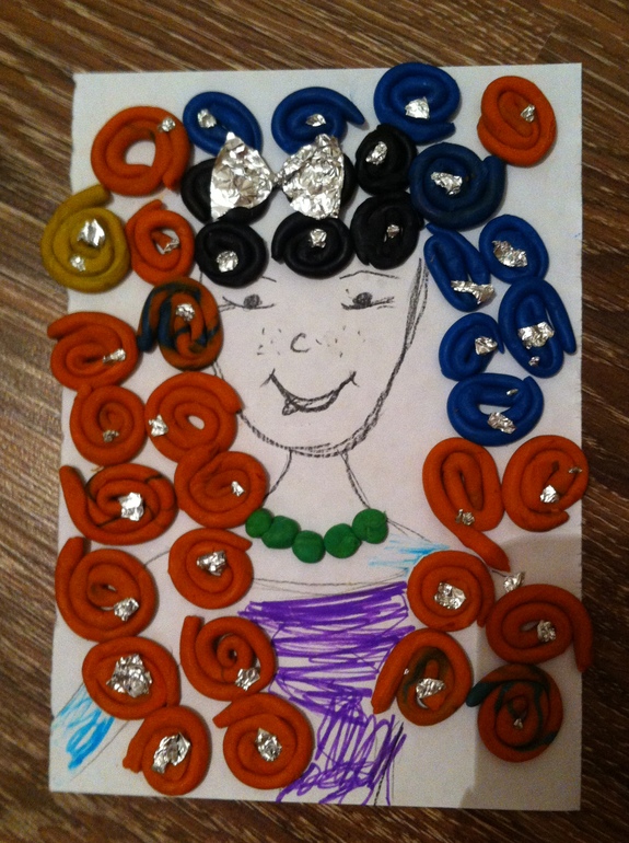 А это портреты. Кудряшка полностью Сонино творение, я только жгутики катала. А вот блондинка мое творение. Дочка не захотела ее делать, сказала она ей не нравится, лицо как у ведьмы. Ну какая есть, лучше не смогла нарисовать.