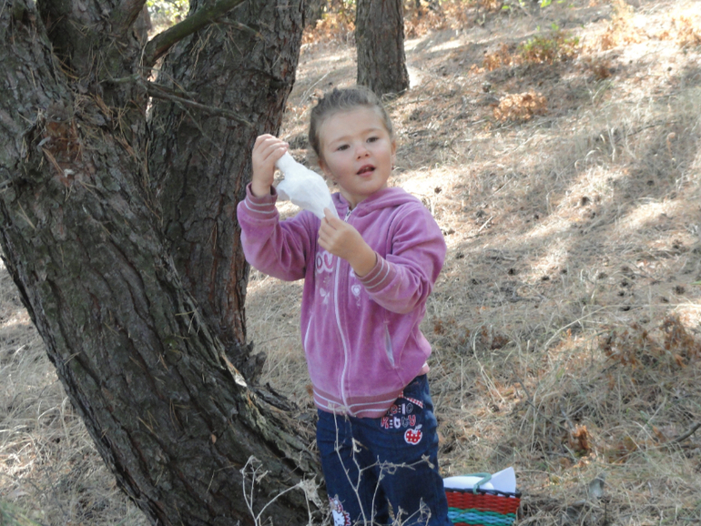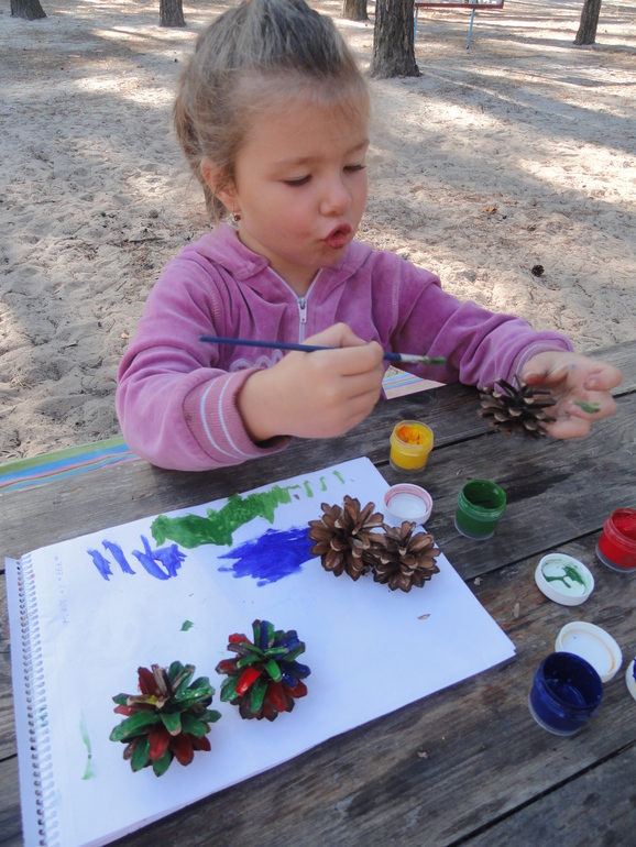 Еще в этот день красили шишки, но Катю это не сильно увлекло.