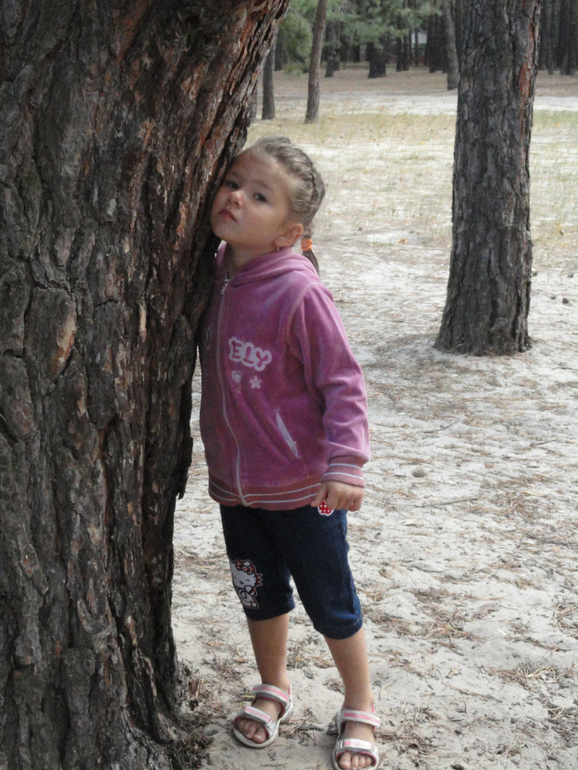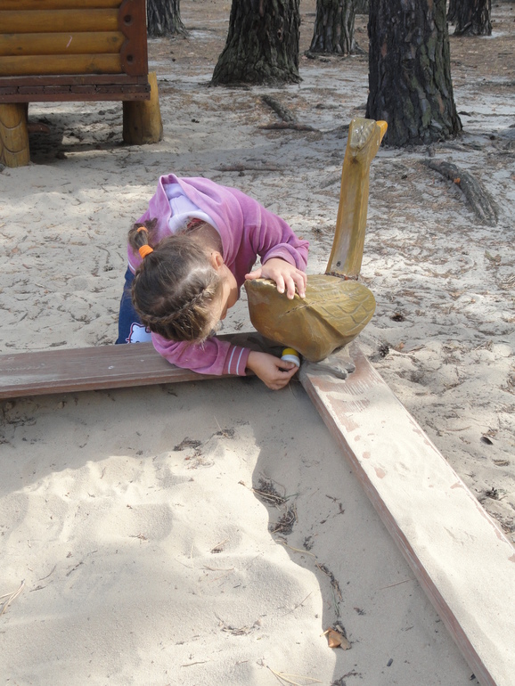 Когда же дочь высказала недоверие к тому, что это Лесовичок делает, то я ей предложила самой послушать(я якобы слушаю дерево и так знаю, что загадывает нам Лесовичок) дерево и узнать, где искать остальные краски.