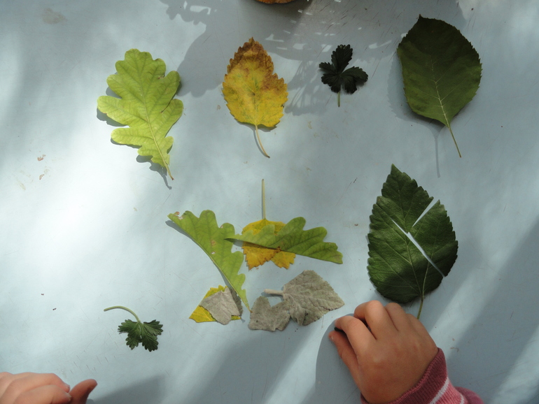 Собрали пазлы из живых листиков.