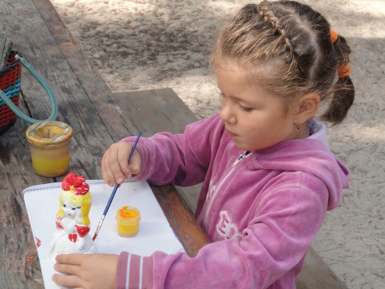И отправились в обратный путь. На месте печенья Катя нашла еще краску и вот так волшебство - "пропавшую" гипсовую фигурку девочки Маши. Радости было...