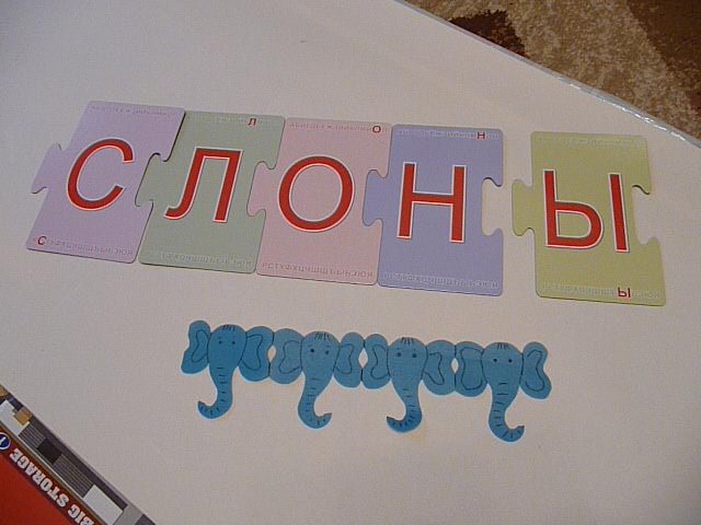 Вместо одного слона, с помощью буквы Ы, появились слонЫ. Собрали слова используя буквЫ-пазлЫ.