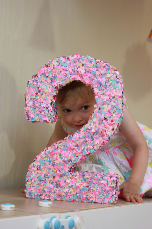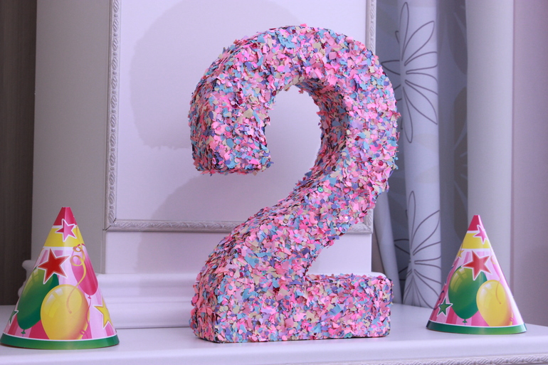 Двойку делали из гофрокартона и обклеивали мелко нарезанной цветной бумагой.