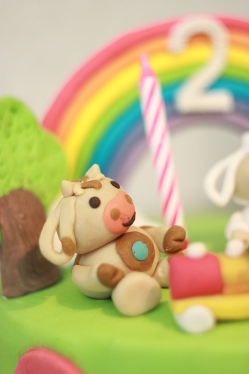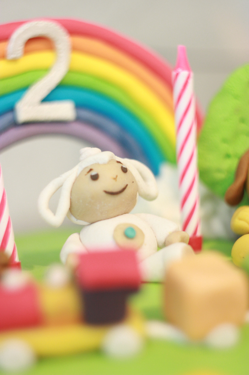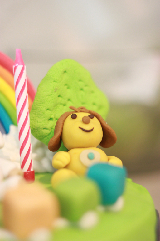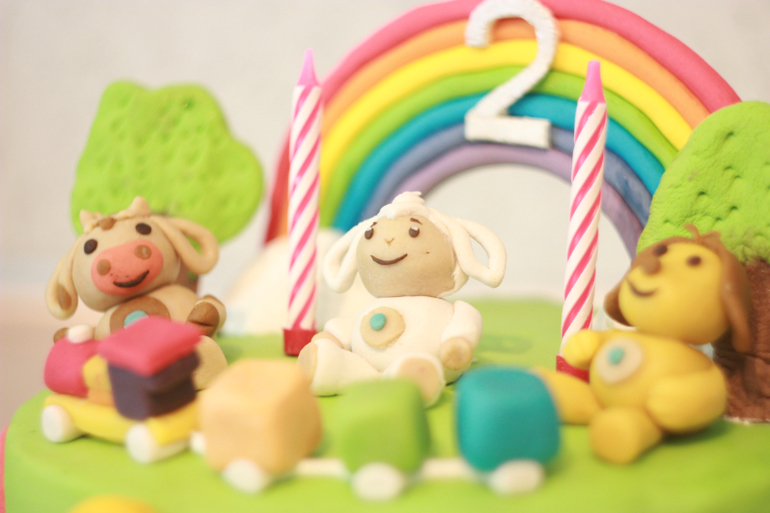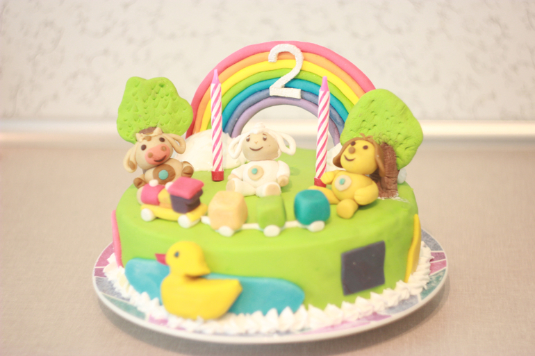И вот такой именинный торт у нас был на второе день рождения. Выбрали тему мультика Tiny Love, поскольку именно эти мультяшные герои были дочкиными любимчиками на втором году жизни. Изготовление торта заняло больше всего времени. Фигурки лепили с мужем на пару уже ночью.![]()