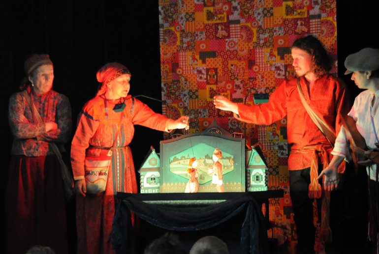 Очень камерное и очень музыкальное представление. Дочка в полном восторге. Формат был домашний- дети сидели и лежали на ковре, родители сидели на стульяхв заднем ряду. Понравилось все - и то,что артисты пели на разные голоса народные песни, и играли на народных инструментам, все с приговорками, да скороговорками. Сказка очень мудрая и добрая. Исполнители не сбивались,все представление в едином ритме, на одном дыхании, детки участвуют)