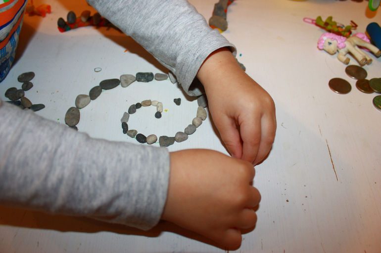 Собрала сегодня детям коробку морской гальки. Это всегда ужасно интересно дать им нечто неоформленное, не развивающую игрушку за 5 тысяч рублей, в которой все уже продумано "от" и "до", и посмотреть,что они с ЭТИМ будут делать. Потрясающе наблюдать за тем как начинает работать детский мозг, соображая что это и чем может быть, как использовать и куда применить.