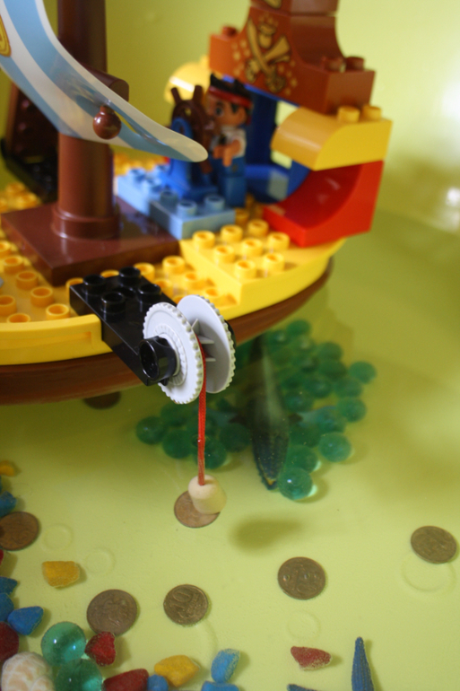 Лебедку сделала из детальки лего + магнит на шнурке от магнитной рыбалки.