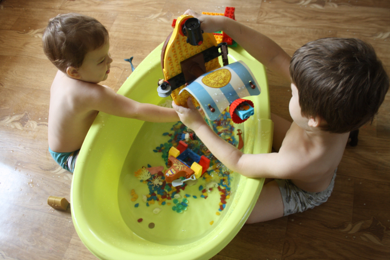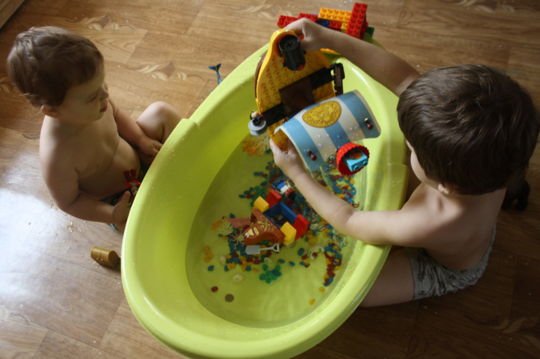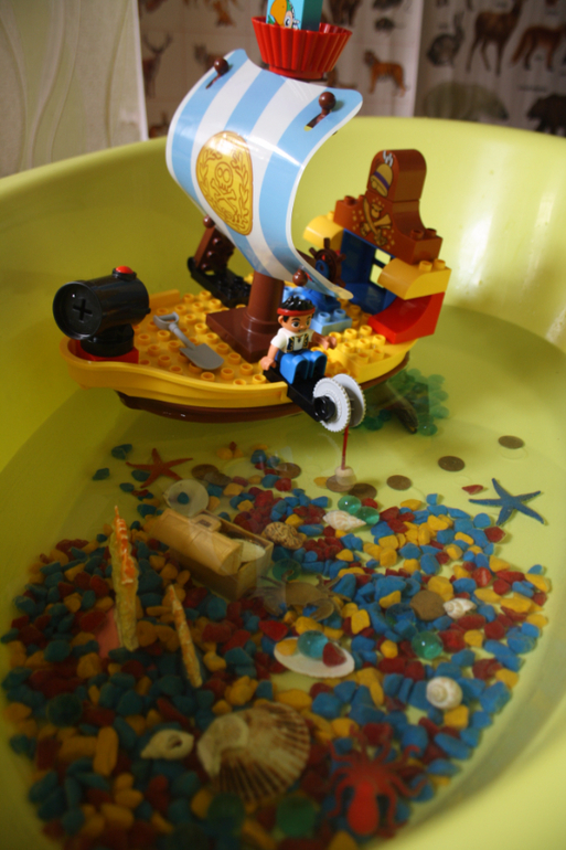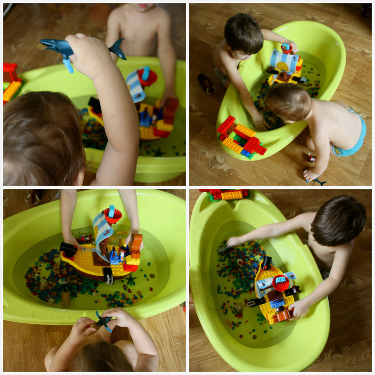Ну и детские игрища)) На данный момент это самая самая "коробочка" из всех наших коробок, а я сужу по заинтересованности карапузов. Так вот тут они не просто играли, а играли вместе, местами даже по ролям!!! Хотя сначала была потасовка из-за корабля...