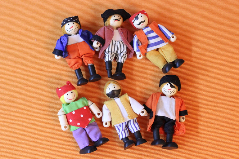 Пираты тоже наша тема, с лего джейком играет каждый день. Фигурки деревянные+ ткань, 6 штук ок 500 руб, сеть Белый кролик, производитель Винтик шпунтик