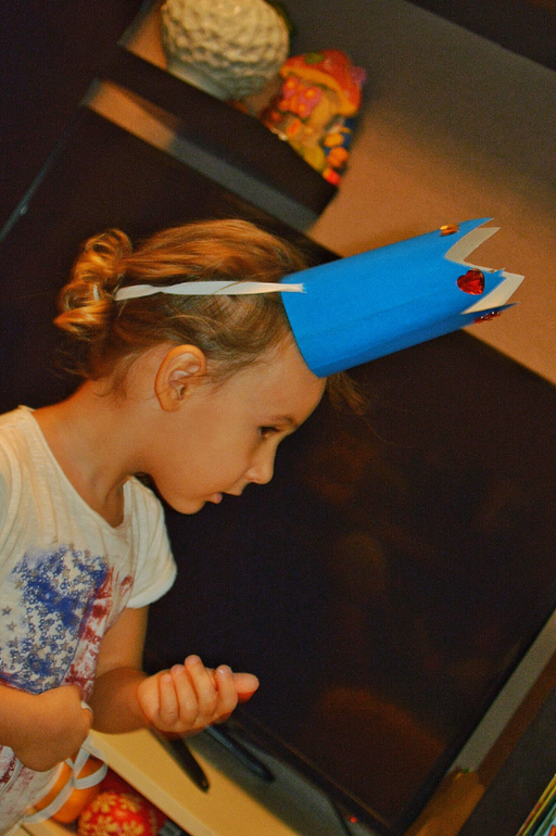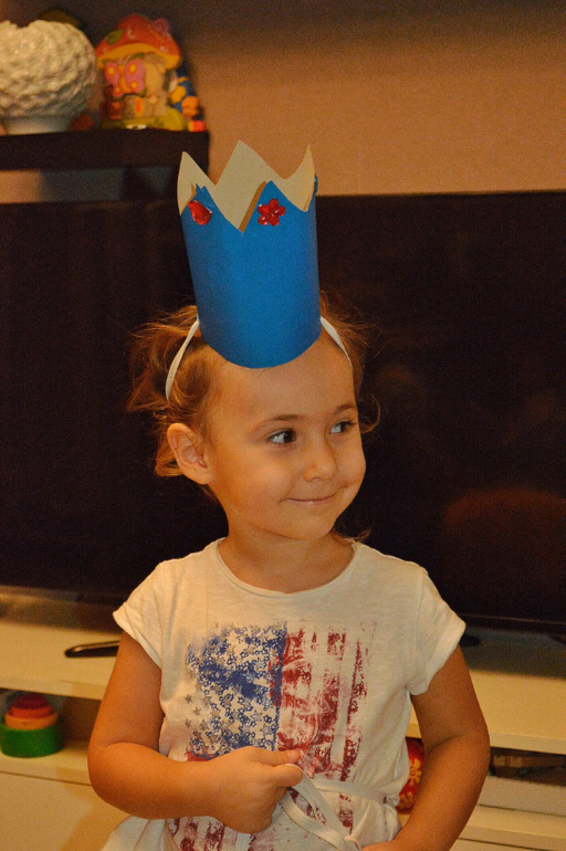 А ещё в догонку смастерили корону. В том году делали из втулки, сейчас просто из картона. И теперь Даша-"принцесса по имени Королева".))