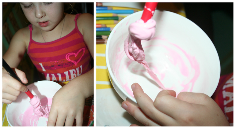 Дальше нужно приготовить простой лист бумаги и как бы отжимая жвачку похлопать ей об бумагу, после этого уже можно играть и тискать ее столько, сколько хочется :-) На следующий день жвачка может стать чуть плотнее, но не сильно, оторваться от того, чтобы не мять и не рвать ее на мелкие кусочки очень сложно. Невероятно занимательная штука! Очень советую попробовать приготовить, и если вдруг мой мастер-класс показался не очень понятным, могу порекомендовать отличное подробное видео. Экспериментируйте :-)