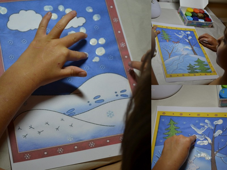 вчера я им распечатала шаблоны и рисовали пальчиками