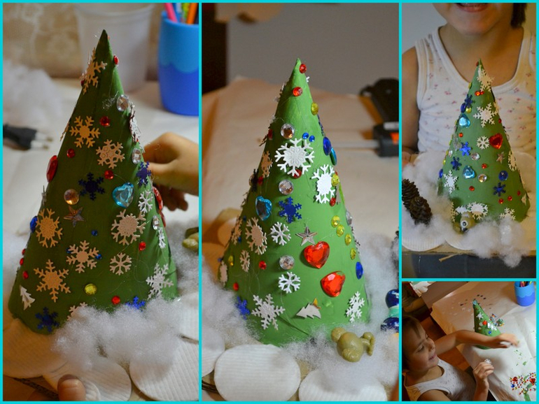 Лен, а на что стразы и прочее лепили к ёлке? Мы тоже такие ёлки запланировали сделать с местными русскими ребятишками :) Жаль, снежинок таких не найду((